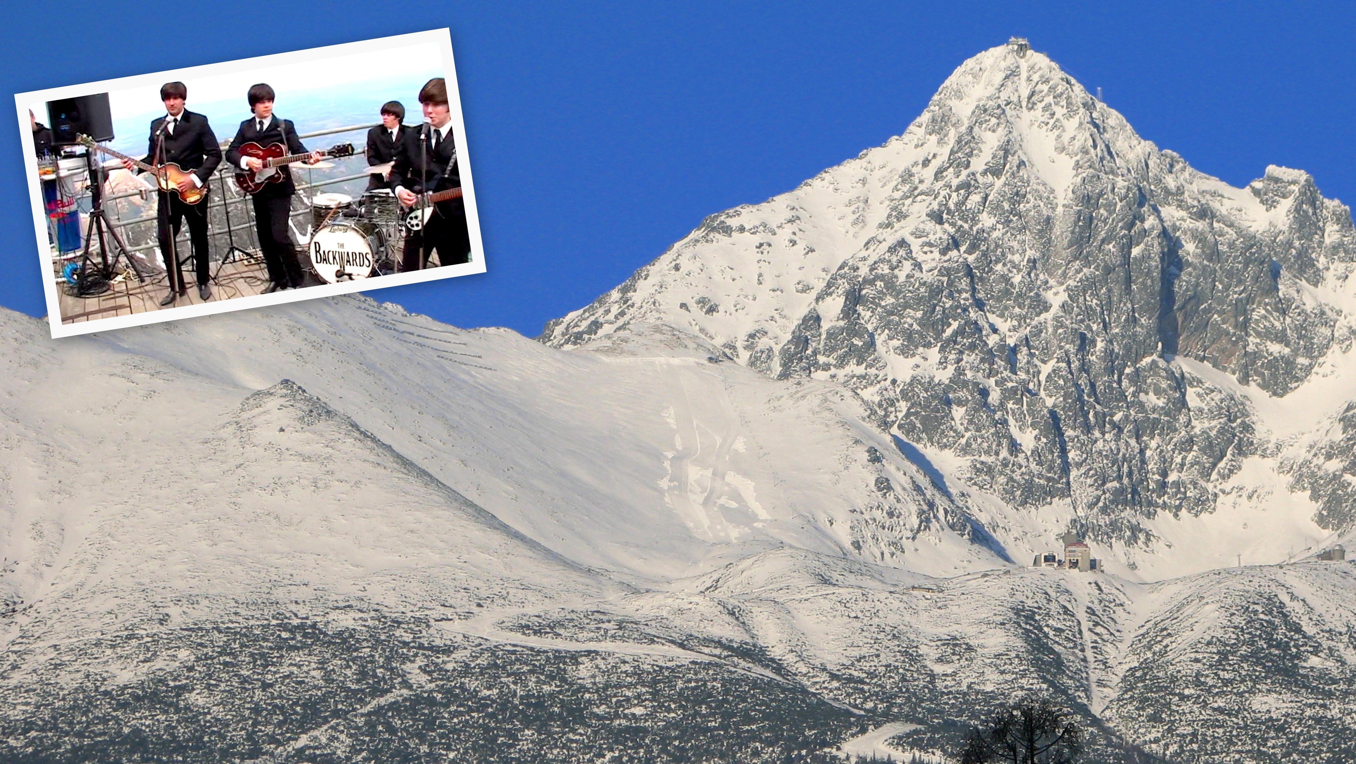 Legendárna skupina Beatles v Tatrách nikdy nebola, ale ich hudba áno! V perfektnom prevedení kapely Backwards. Lomnický štít je vo výške 2 632 mettrov nad morom. "Takto vysoko sme ešte nehrali," hovorí člen skupiny.