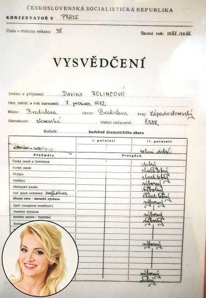 Na sociálnej sieti sa objavilo vysvedčenie z konzervatória v Prahe, na ktorom svieti meno Darina Rolincová.