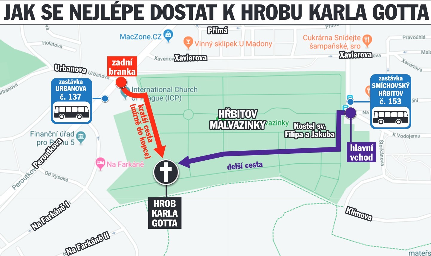 Výrazný, no pritom jednoduchý a elegantný, na čestnom mieste na cintoríne Malvazinky neďaleko Bertramky. Urnu s ostatkami uložila Ivana Gottová do hrobu len v piatok večer.