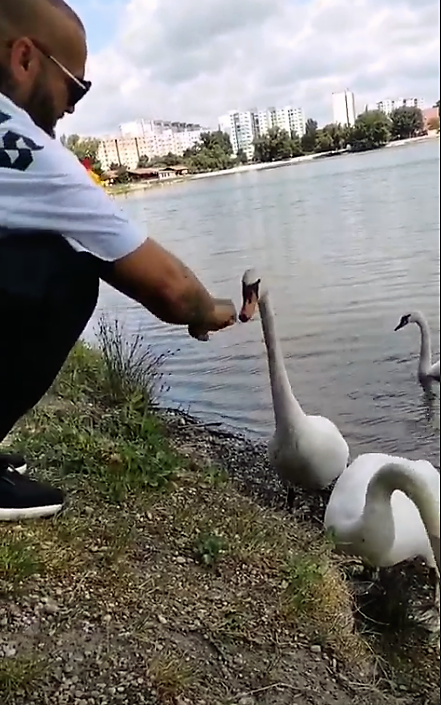 Hoci nevyzerali vyhladovane, raper sa rozhodol, že pár dobrotiek labutiam dopraje. Je pritom známa vec, že voľne žijúce vtáky by ľudia dokrmovať nemali. Tobôž nie pečivom, ani sladkými, slanými či hocijako ochutenými keksíčkami. Patrik ale zrejme nič lepšie po ruke nemal.