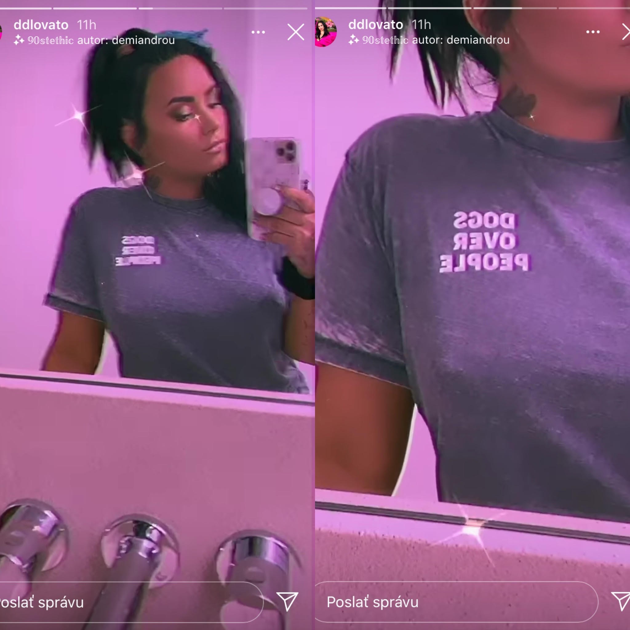 Demi zanechala na Instagrame veľavravný odkaz v podobe niekoľko sekundového videa v príbehu, na jej ruke chýba snubný prsteň a nápisom na tričku poukazuje na loajalitu psíkov: