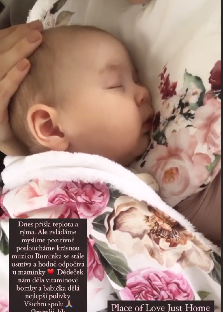 "Dnes prišla teplota a nádcha. Ale zvládame to, myslím, pozitívne, počúvame krásnu muziku, Ruminka sa stále usmieva a často odpočíva pri mamičke," opísala zmenu zdravotného stavu svojej dcérky pozitívne naladená mamička Monika. Azda aj preto sú jej slová možno prekvapivo zľahčujúce: "Za nás je to chrípka. Zvládame to všetci každým dňom lepšie a to je dôležité".