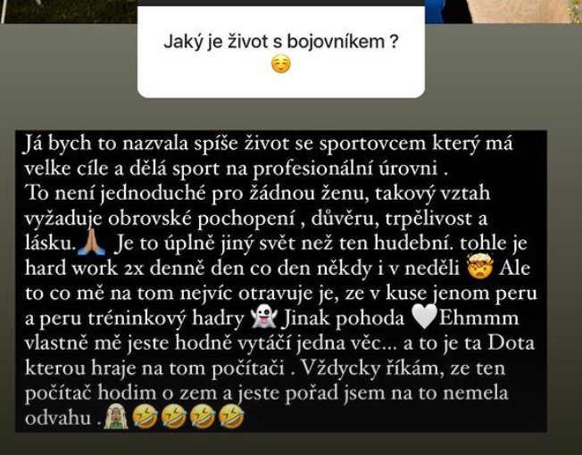 Priznáva ale to, že skutočne sa stretli dva odlišné svety. "Je to úplne iný svet, ako ten hudobný, toto je hardwork dvakrát denne, deň čo deň, niekedy aj v nedeľu," osvetľuje prípadným potenciálnym záujemcov o kariéru profi športovca. A zaklincovala to odkazom ženám, ktoré by chceli takýto vzťah. "To, čo ma na tom najviac otravuje, je, že vkuse periem a periem tréningové handry," dodala tak trochu s humorom. Je tu ale ešte jedna vec, ktorá zrejme občas spôsobuje v Monikinej rodinke rozbroje - Machova závislosť na istej počítačovej hre. Ako sa Bagárová zastrája, raz mu ten počítač hodí o zem. No aj tak, ak sú toto najväčšie "problémy", ktoré vo vzťahu majú, dá sa hovoriť o úplnej idylke. Snáď im to vydrží.