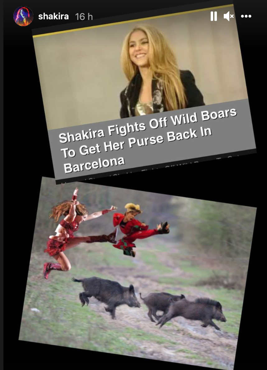 Kolumbijská speváčka Shakira sa musela naozaj poriadne vystrašiť, keď na prechádzke s osemročným synom, ktorého otcom je futbalista Barcelony Gerard Piqué, naďabila v jednom barcelonskom parku na skupinku diviakov. Zrejme nebol nikto v okolí, kto by jej pomohol a odohnal nebezpečné zvieratá, a tak sa rozhodla, že to skúsi sama a zahnala sa proti nim kabelkou. To ale zrejme robiť nemala, lebo chytré zvery jej ju zobrali a zaniesli do lesa. Celú nebezpečnú situáciu ihneď opísala vo videu na Instagrame.