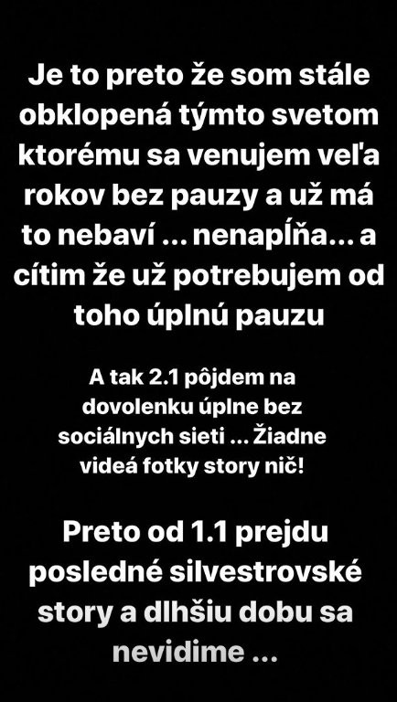 Virtuálnym svetom je Zuzana Plačková obklopená už veľmi dlho. Venovala mu maximum času, ale teraz si chce dať od Instagramu dlhšiu pauzu. Stane sa tak od prvého januára 2020.
