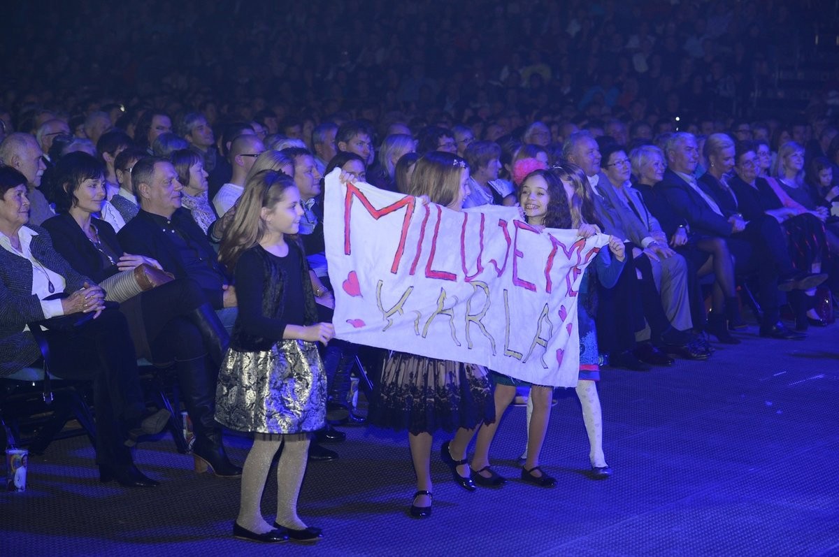 Tie sedeli v prvej rade a z manžela a z otecka nespustili oči. Gottovky to rozprúdili a Karel len pozeral. Ku koncu šou rozbalili transparent s heslom: MILUJEME KARLA! a potom začali tancovať pred pódiom a potom aj na pódiu. Vôbec sa nehanbily a otca Karla to hrialo pri srdci.