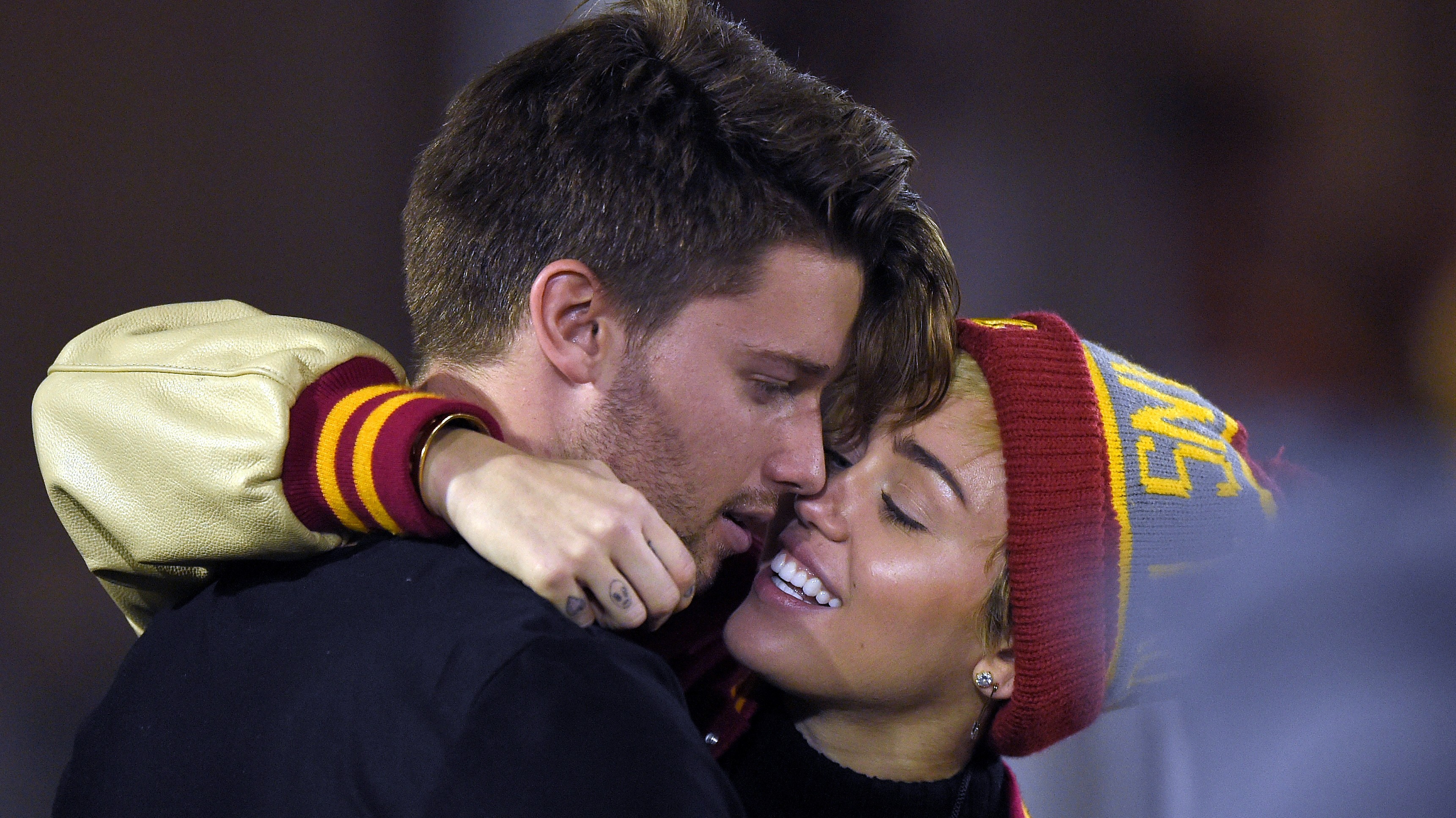 Prvýkrát sa svet dozvedel o tom, že Miley Cyrus tvorí pár so synom herca a bývalého kalifornského guvernéra Arnolda Schwarzeneggera v novembri. Dvojica sa vášnivo bozkávala na futbalovom štadióne v Los Angeles.