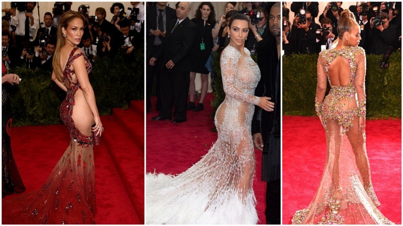 Všetky tri spomínané dámy prišli v takzvaných "nahých šatách", ktoré sú zmesou priesvitného materiálu, premyslene umiestnených kusov látky, kamienkov či výšiviek. Kim Kardashian, ktorá chce byť vždy stredobodom pozornosti tak mala veľmi ťažkú konkurenciu a tentoraz zostala v tieni svojich sokýň.
