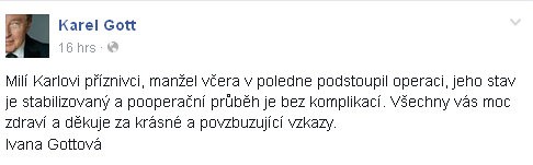 Maestro podstúpil operáciu v utorok. Momentálne je na jednotke intenzívnej starostlivosti. Po viac ako 24 hodinách prelomila mlčanie manželka Ivana. Na Facebook napísala detaily o spevákovom zdravotnom stave.