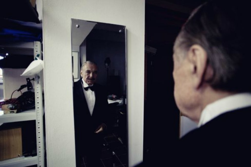 “Toho priniesla naša maskérka, našťastie ho má dobre vychovaného, tak len sedel a púšťal dlhé chlpy na krásny, na mieru šitý smoking Karla Gotta. Trocha sme sa báli, čo tomu povie, ale on také drobnosti nerieši. Pozorne si strážil správne svetlo a vyznenie fotografie,“ spomínajú Petr s Markom.