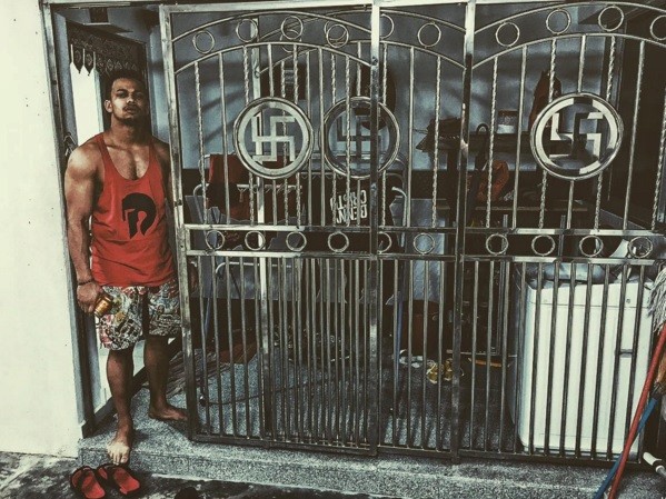 "Veľa ľudí nevie, že svastika (hákový kríž) je oveľa staršia ako nacizmus. Je to súčasť budhistického aj hinduistického náboženstva a tento symbol je dodnes používaný ako symbol šťastia, " napísal k fotografii.