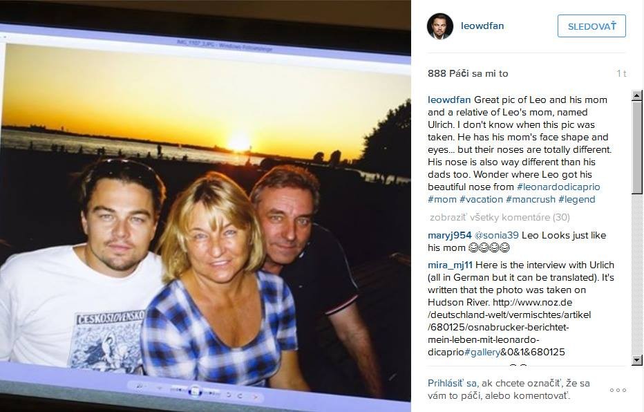 Na sociálnej sieti Instagram sa objavila fotografia božského Leonarda DiCapria v tričku s nápisom Československo. Fotografia zachytáva herca, jeho mamu a jej príbuzného. Ide o realitu alebo len koláž?