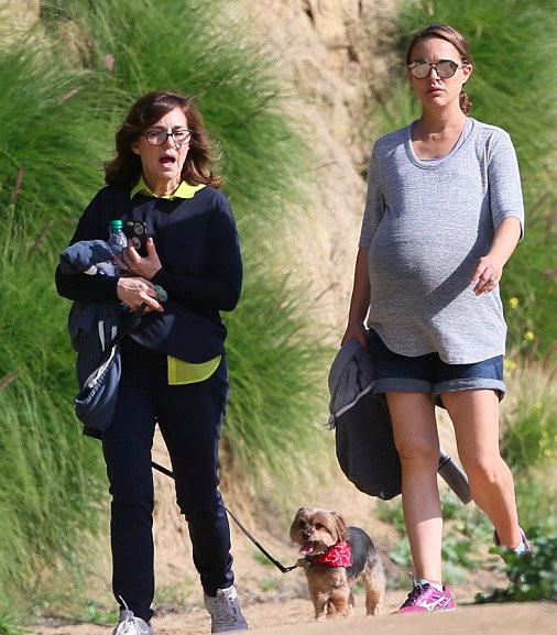 Herečka už pred mesiacom vyzerala, že každým dňom porodí. Ani s poriadnym bruškom, ktoré musí dať drobnej herečke zabrať, neleňoší doma, naopak aktívne sa hýbe. Nedávno sa vybrala do kalifornských kopcov so svojím psom. Pre istotu však v sprievode svojej mamy.