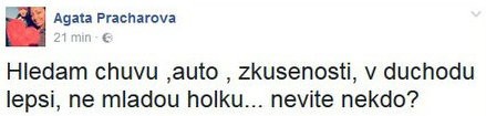 Modelka zverejnila na sociálnej sieti inzerát, v ktorom hľadá pestúnku. Musí mať vodičský preukaz a ideálne by mala byť vo veku dôchodkyne. Skúsená pani podľa Agáty určite lepšie zvláda starostlivosť o dieťa než mladá žena.