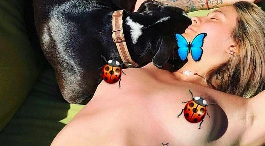 Na sociálnej sieti Instagram zverejnila poriadne horúcu fotografiu. Opaľovala sa hore bez, pričom si bradavky zakryla lienkami z mobilnej aplikácie. Jej výtvor, ktorý neskôr z účtu radšej vymazala, pripomína fotky rebelky Miley Cyrus (24) z čias jej divokého obdobia.