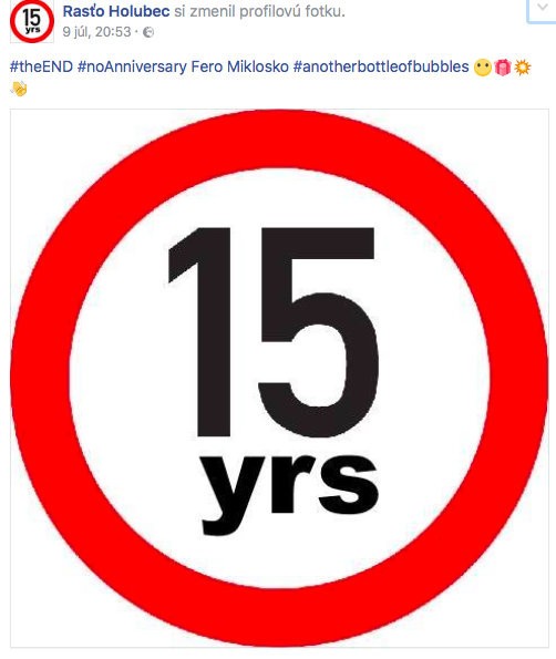 "Je koniec. Žiadne výročie Fero Mikloško," napísal na sociálnej sieti Facebook Rasťo Holubec, ktorý si zároveň zmenil profilovú fotku.