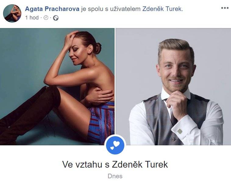 Manželstvo Agáty a Jakuba Prachařovcov je definitívne minulosťou. Zatiaľ čo herec a moderátor randí už niekoľko mesiacov s modelkou Denisou Dvořákovou, Prachařová sa do vzťahu nehrnula. Ale ako sa zdá, dlho single nevydržala. Na sociálnej sieti sa pochválila priateľom Zdeňkom.