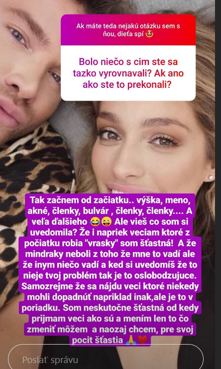 ​Na Instagrame pravidelne umožňuje 30-ročná Jasmina svojim fanúšikom klásť jej otázky. A odpovedá aj na osobné otázky, ako napríklad tú, či sa s ničím v živote ťažko vyrovnávala. "Tak začnem od začiatku... Výška, meno, akné, členky, bulvár, členky, členky a veľa ďalšieho," prekvapila výpočtom komplexov Jasmina. Čo má s členkami nie je úplne jasné, no evidentne to napríklad Rytmusovi vôbec neprekáža.