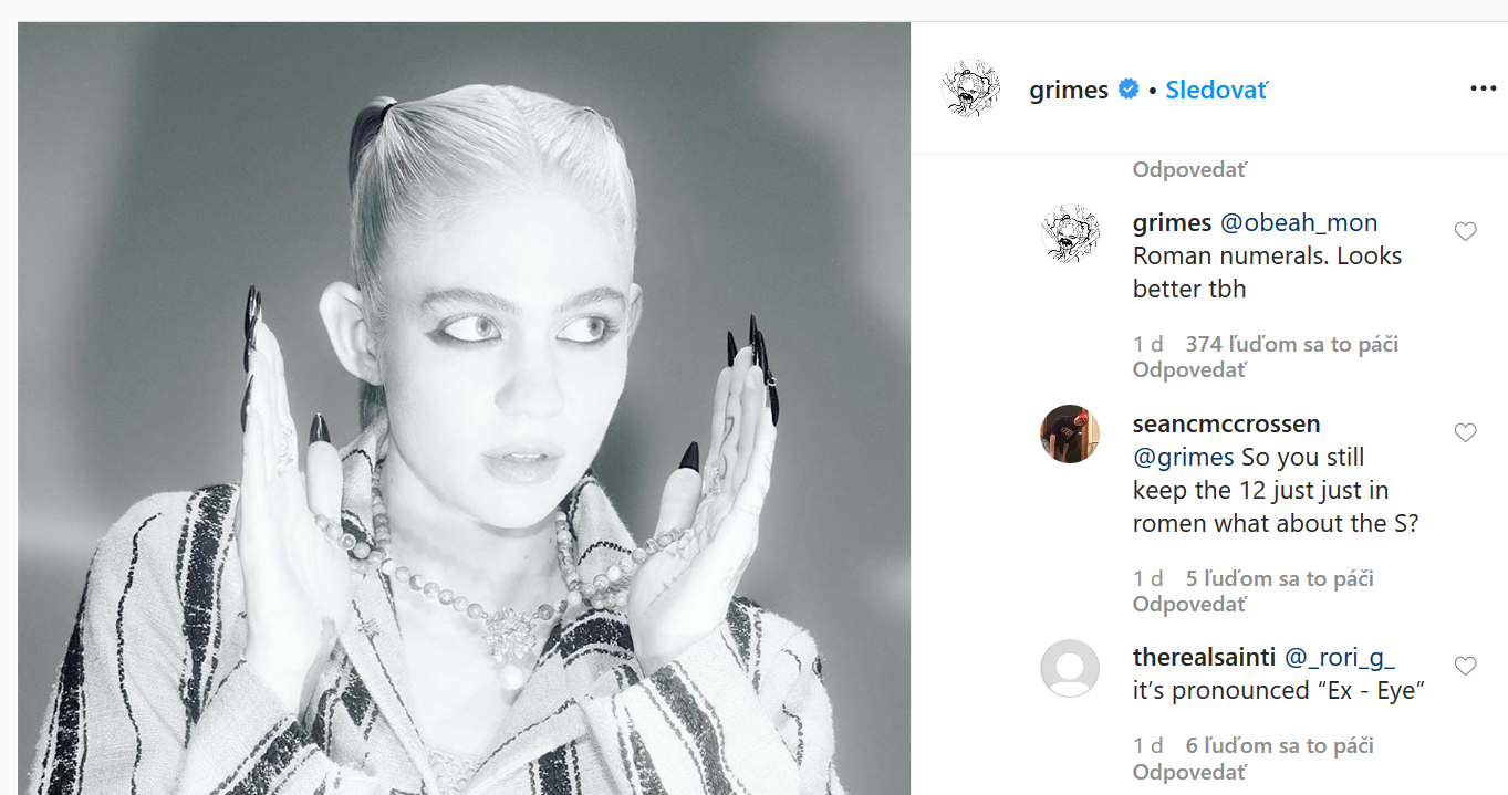 Speváčka a novopečená mamička Grimes v odpovedi svojim fanúšikom priznala, že rímske číslice v mene jej potomka vyzerajú lepšie: