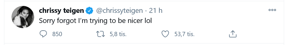 Chrissy svoj vulgárny komentár na Twitteri vymazala a neskôr sa v inom príspevku ironicky ospravedlnila: