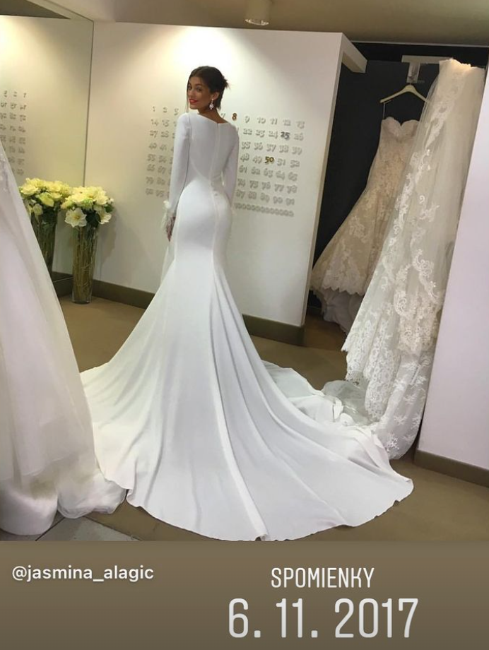 No medzitým boli tri roky, ktoré budú v Jasmininom živote absolútne nezabudnuteľné. Ešte v roku 2018 sa po pár mesiacoch vzťahu zasnúbila s Patrikom Vrbovským, vzápätí otehotnela a v máji roku 2019 sa za Rytmusa vydala. O dva mesiace prišiel na svet ich prvý synček Sanel. No hoci sa čo-to vie o živote Jasminy pred jej vzťahom s manželom, v podstate nič sa nevie o jej vzťahoch. Známy je len jeden z jej expriateľov, športovec Martin Balaď. Nie je ale známe, žeby niekedy boli v hre zásnuby, či nebodaj svadba s týmto, alebo iným priateľom krásnej moderátorky. O to viac prekvapila fotkou z roku 2017 v svadobných šatách v svadobnom salóne. S najväčšou pravdepodobnosťou nejde o skúšanie na vlastnú svadbu, ale len predvádzanie modelu, keďže Jasmina sa živila aj ako modelka. No hoci jej tie šaty mimoriadne sekli, na vlastnej, skutočnej svadbe bola predsa len ešte dokonalejšia nevesta.