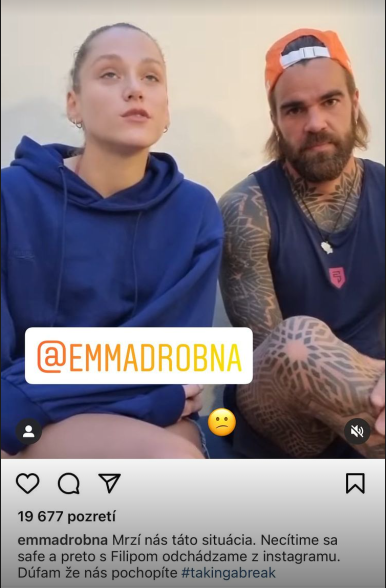 Veľmi radikálne zareagovali Emma Drobná a Filip Šebo, ktorí sa rozhodli to na sociálnej sieti úplne zabaliť. "Mrzí nás táto situácia. Necítime sa bezpečne a preto s Filipom odchádzame z Instagramu. Dúfam, že nás pochopíte," napísala Emma a skutočne oba profily sympatického páru zmizli. Ako Dominika Kavaschová zverejnila, ohlásilo sa jej mnoho ľudí s podobnými skúsenosťami. Len málokto si však trúfne sa vydieračovi postaviť aj za cenu rizika, že sa fotky dostanú von. Dominike preto patrí iste uznanie, otázne je, či pôjde ešte ďalej a prípad odovzdá do rúk polície. Vydierač by nemal obísť bez trestu.