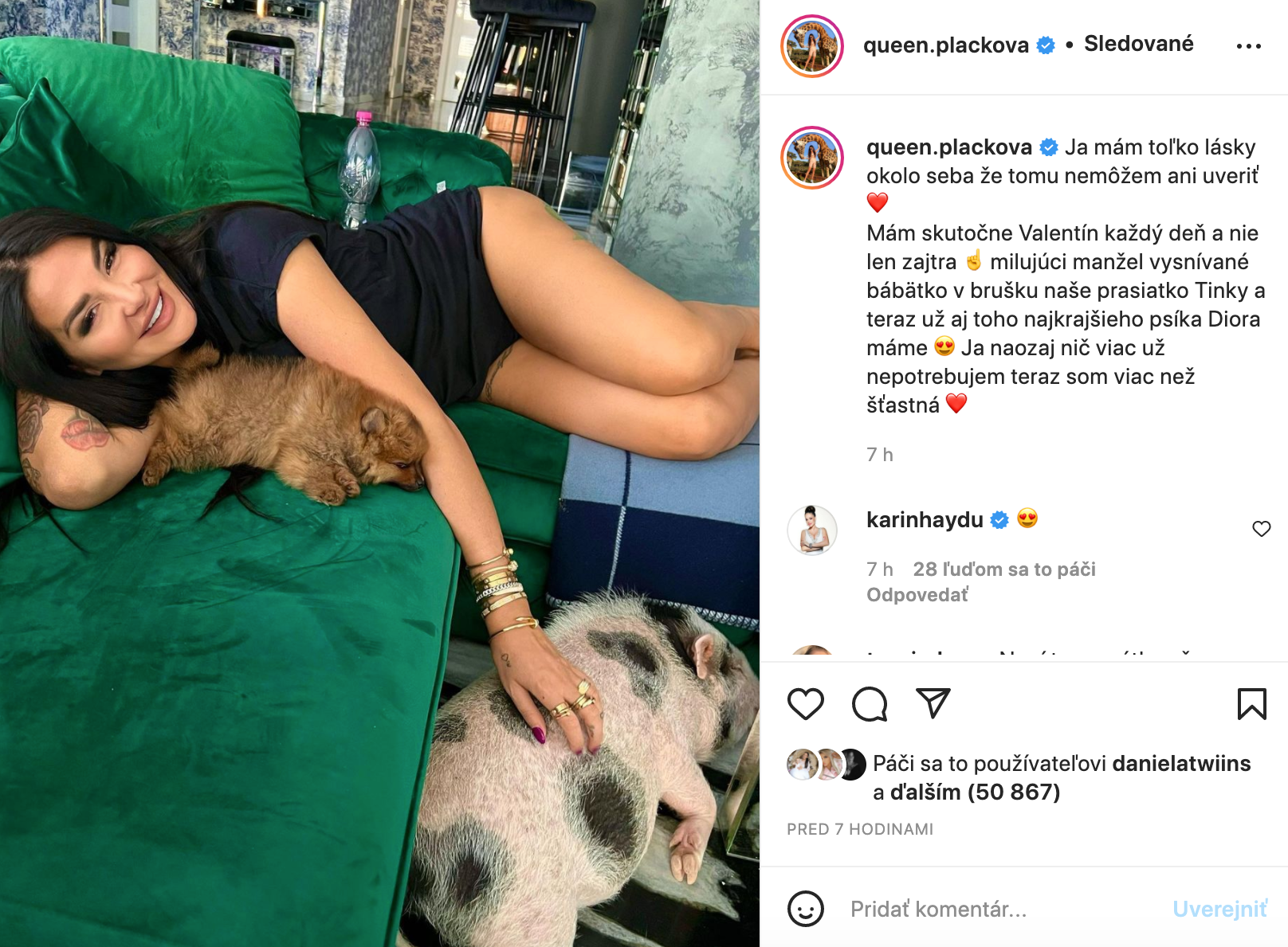"Ja mám toľko lásky okolo seba, že tomu nemôžem ani uveriť. Mám skutočne Valentína každý deň a nielen zajtra. Milujúci manžel, vysnívané bábätko v brušku, naše prasiatko Tinky a teraz už aj toho najkrajšieho psíka Diora máme," napísala Zuzana na Instagram k fotke so svojím "zverincom". Rozkošné šteniatko je špic, hoci sa v komentároch ľudia dohadujú, či to nie je aktuálne trendový pomeranian, teda trpasličí špic, zdá sa, že taký maličký zrejme nie je. Strauszovci sa nezapreli a dali mu meno, aké by od nich človek presne čakal. Už len teraz si počkať, ako budú po narodení bábätka zvládať starostlivosť nielen o neho, ale aj o zvieratká - tie sú totiž záväzkom na dlhé roky, ale to snáď René pred kúpou psíka dobre zvážil.