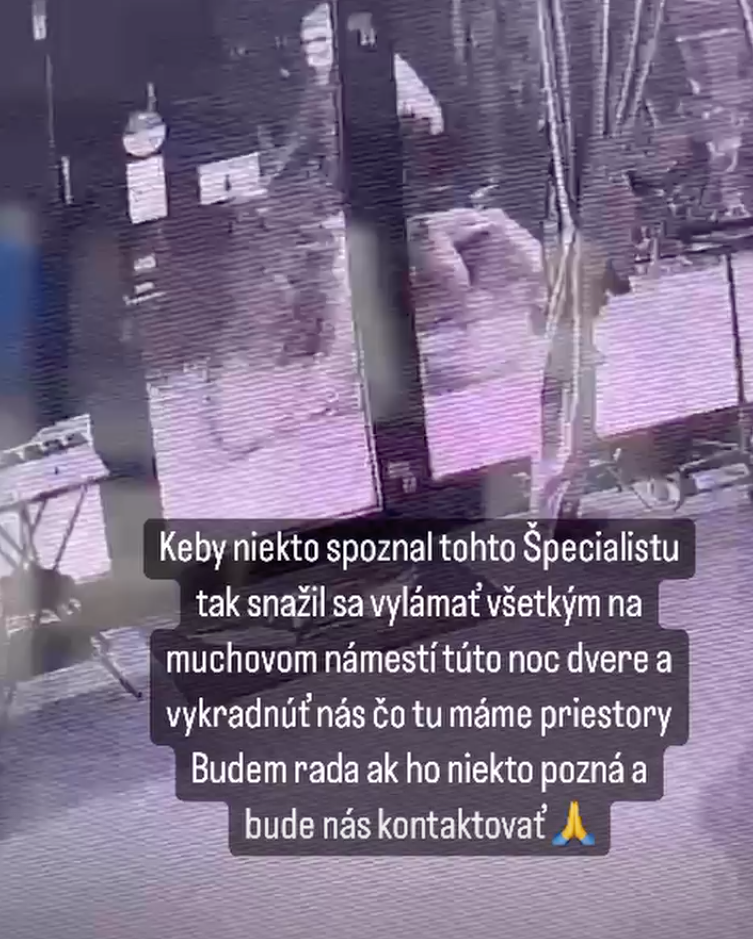 No ešte prekvapivejšia je informácia, že chlapík, ktorý sa vybral lúpiť na bicykli, to zrejme celý frustrovaný skúšal aj v ďalších prevádzkach. Zuzana sa teraz snaží polícii uľahčiť robotu. "Keby niekto spoznal tohto špecialistu, snažil sa vylámať všetkým na Muchovom námestí dvere a vykradnúť nás, čo tu máme priestory. Budem rada, ako ho niekto spozná a bude ma kontaktovať," poprosila sledovateľov o pomoc. Pre Zuzanu je to už tretia podobná skúsenosť.