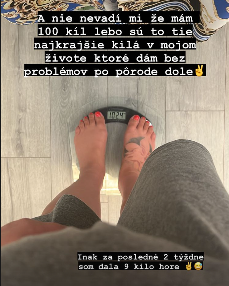 Zdá sa, že Zuzana patrí definitívne do skupinky žien, ktoré priberú extrémne. Podľa najnovšieho záberu, ktorý zverejnila v instastories, má už 102 kíl. "Nie, nevadí mi, že mám 100 kíl, lebo sú to tie najkrajšie kilá v mojom živote, ktoré dám bez problémov po pôrode dole," konštatuje spokojne Plačková s azda až naivným optimizmom.