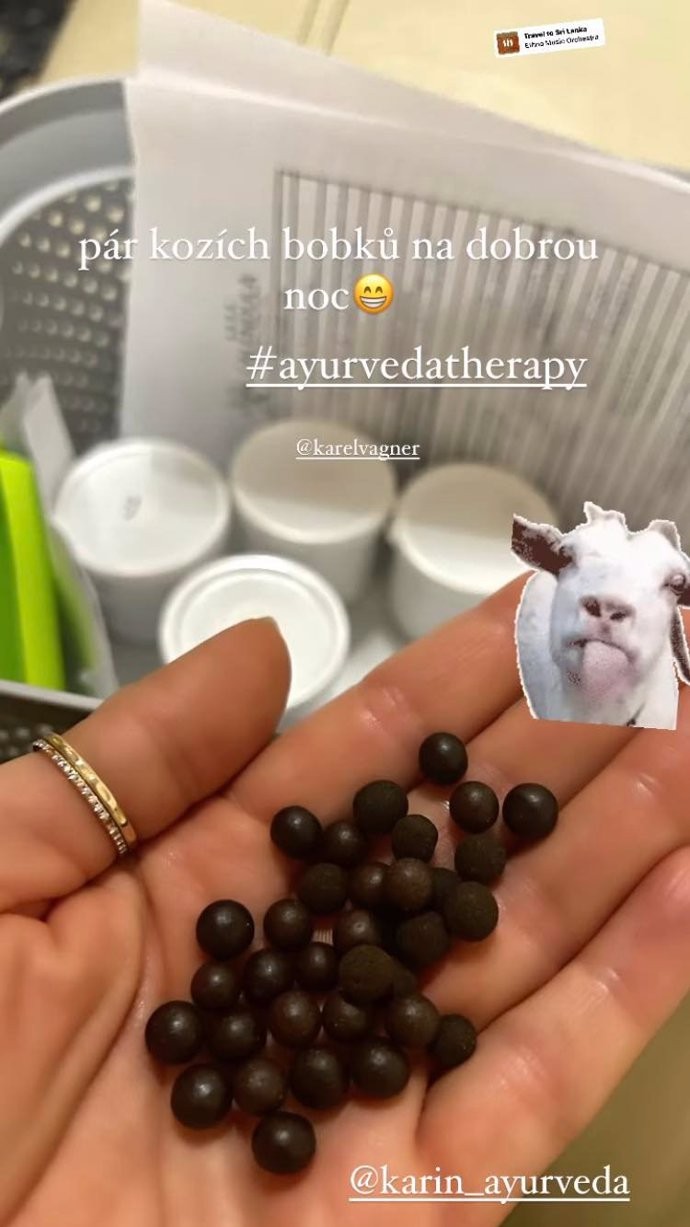Na vysvetlenie nezabudla pridať hashtag s názvom Ayurvedic therapy (ajurvédska terapia) a na fotke označila aj svojho manžela Karla a pridala obrázok kozy. Zloženie si nechala pre seba, ale zrejme sú to do tvaru guľôčky stlačené byliny, ktoré sa používajú v ajurvéde. Azda by ani Simona posadnutá krásou a telom predsa len nešla do takých extrémov, ako je konzumácia skutočných bobkov. Ale ktovie, možno by spravili zázrak!