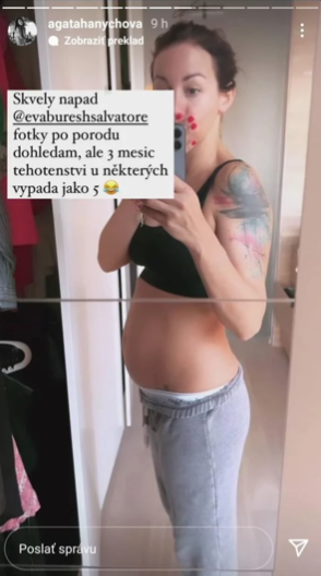 Najnovšie Agáta zdieľala s "jej dievčatkami" fotografiu jej viditeľne narastajúceho bruška. To, že je tehotná už neskrýva, hoci ešte neukončila povestne rizikové prvé tri mesiace. A veru to riadne pocítila krátko pred ich dovŕšením ako memento aj ona. Kvôli krvácaniu si poležala na infúziách dva dni v nemocnici a teraz dodržiava pokyny lekárov a ďalej leží doma a šetrí sa. Streamovanie na Instagrame si ale neodpustí. K fotke s odhaleným bruškom poznamenala: "Fotky po pôrode asi niekde nájdem, ale tretí mesiac tehotenstva vyzerá u niektorých ako piaty mesiac." A skutočne, bruško v prvom trimestri obvykle ani nie je takmer viditeľné, no o treťorodičky je to už predsa len niečo iné.