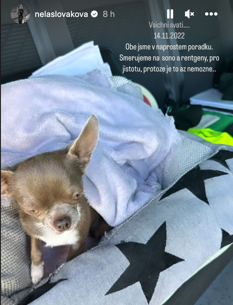 Slováková bola, pochopiteľne veľmi otrasená, no uvedomovala si šťastie v nešťastí. "Ani nechcem pomýšľať na to, keby vedľa niekto sedel. Už by tam asi nikdy nesedel. Som začala premýšľať, či auto nehorí alebo horí, nemohla som sa odopnúť z pásu. A keď som vystúpila z auta, tak môj pes stál vzadu na kapote za rozbitým zadným sklom, proste vyskočila," dodala Slováková informácie aj o jej čivave Lotty. Na Instagrame sa ale predsa len vyjadrila k podozreniam, že sa venovala mobilu. "Čo sa týka telefónu, napriek tomu, že nebol príčinou nehody, rozhodne dávam všetkým za pravdu, že je najlepšie ho nepoužívať, ani keď ho nedržíte v ruke," zhodnotila veľmi rozumne. Ostáva veriť, že sa tým bude nielen ona, ale aj jej verní sledovatelia, aj riadiť.