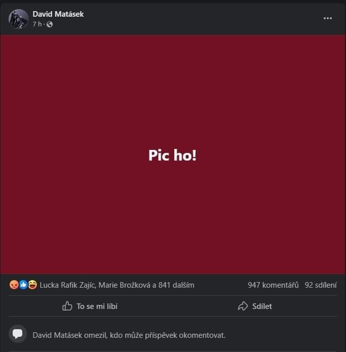 Herec známy najmä zo série o "básnikoch" sa zjavne nechal uniesť emóciami, keď po pár hodinách po atetnáte na Fica na svoj facebookový profil napísal: "pic ho!" To by mohlo naznačovať, že ho to jednak veľmi nemrzí, ale aj to, že tento zločin schvaľuje. Herec potom status zmazal, rovnaké slová použil o dva týždne k fotografii auta so zastupujúcim ríšskym protektorom Reinhardom Heydrichom deň pred výročím atentátu. Český politik a advokát Jindřich Rajchl v tom vidí jasný kontext s Ficom, hoci ho herec nemenoval, a rozhodol sa konať, píše Expres.cz.